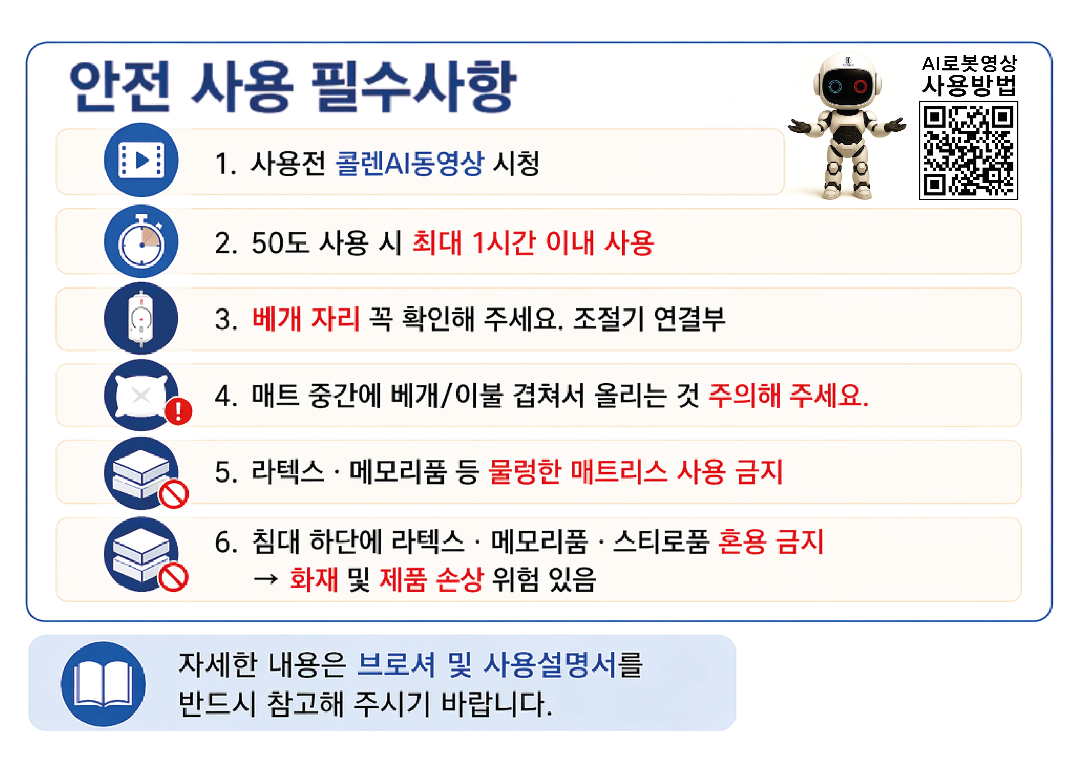이불을 덮지 않아서 그렇습니다.콜렌매트는 전기열선이 아니라 콜렌기술로 만든 실로 만든 섬유발열체로 간접열입니다. 이불을 두껍게 덮을 수록 온도가 높아집니다.